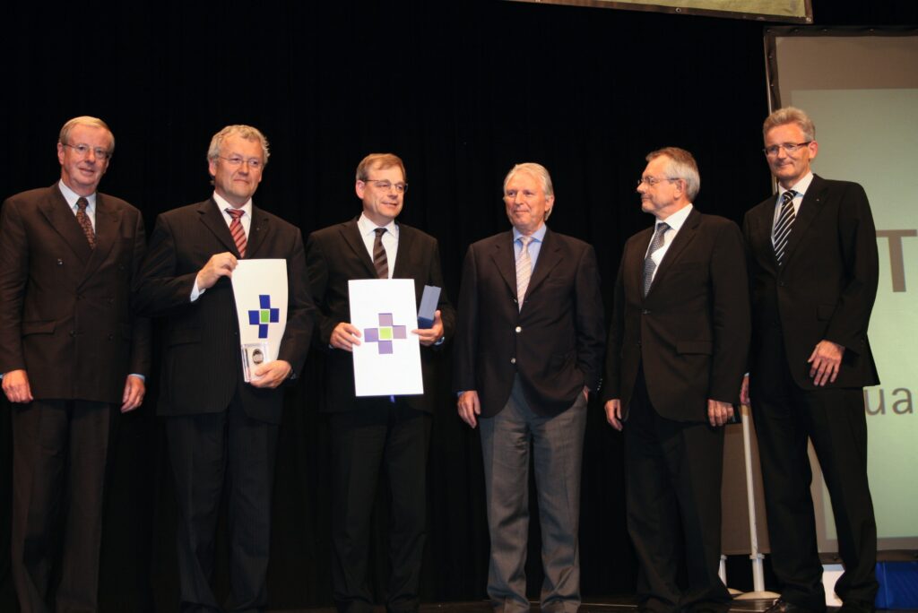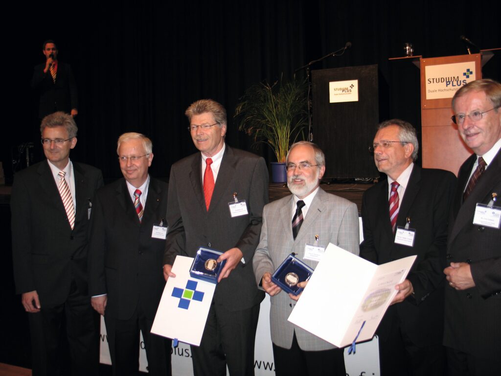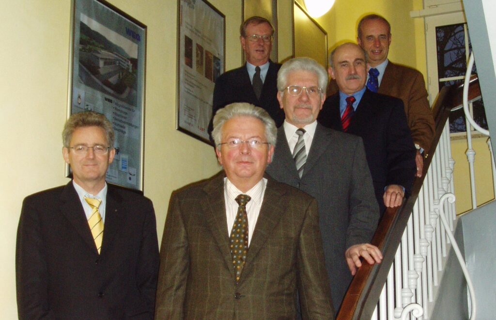 Das erste StudiumPlus-Kuratorium mit FH-Präsident Prof. Dr. Dietrich Wendler (Dritter von rechts) an der Spitze nimmt im Mai 2002 seine Arbeit auf, links Detlef Haaske (CCD), rechts Prof. Dr. Harald Danne (ZDH).
